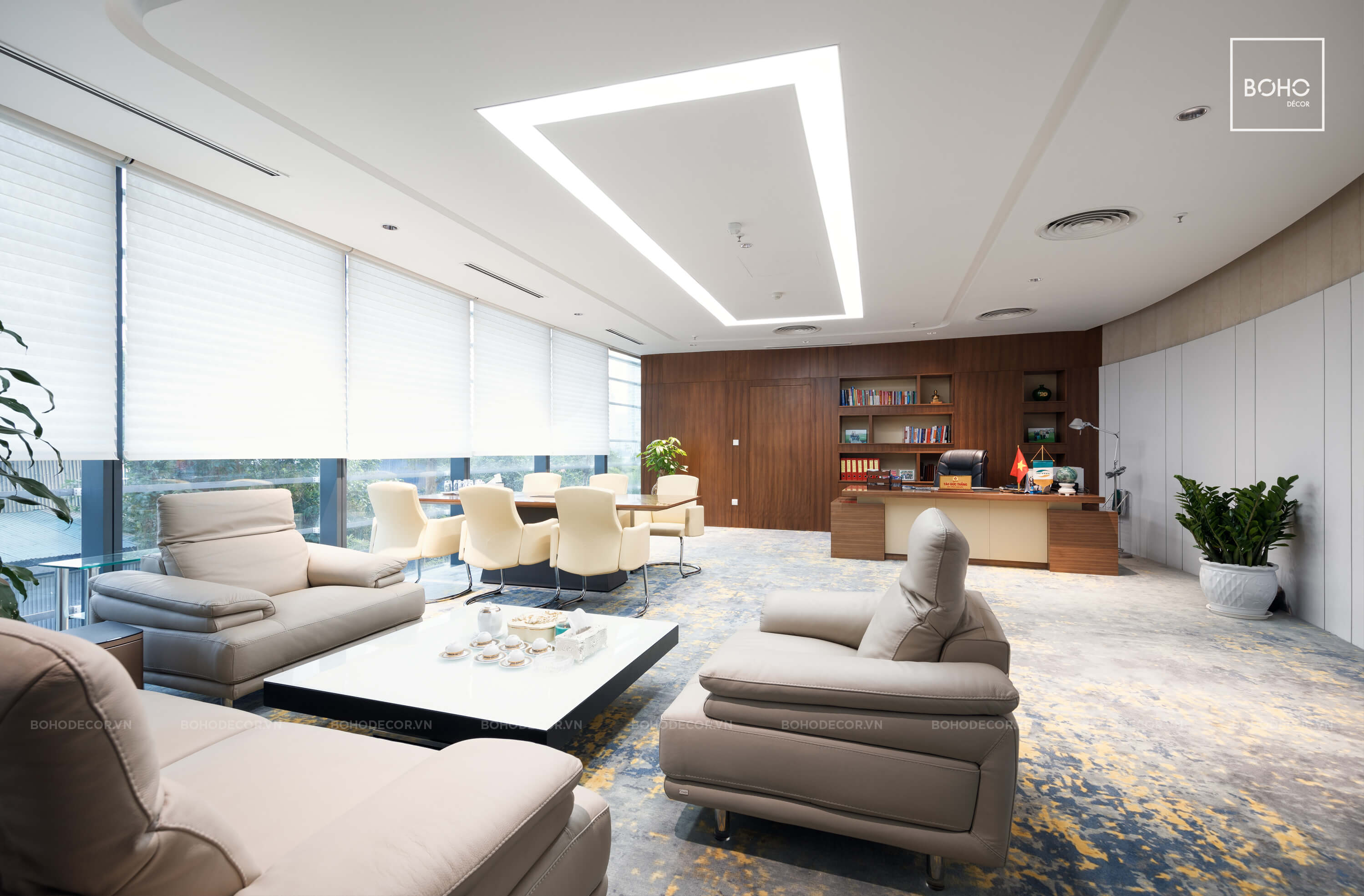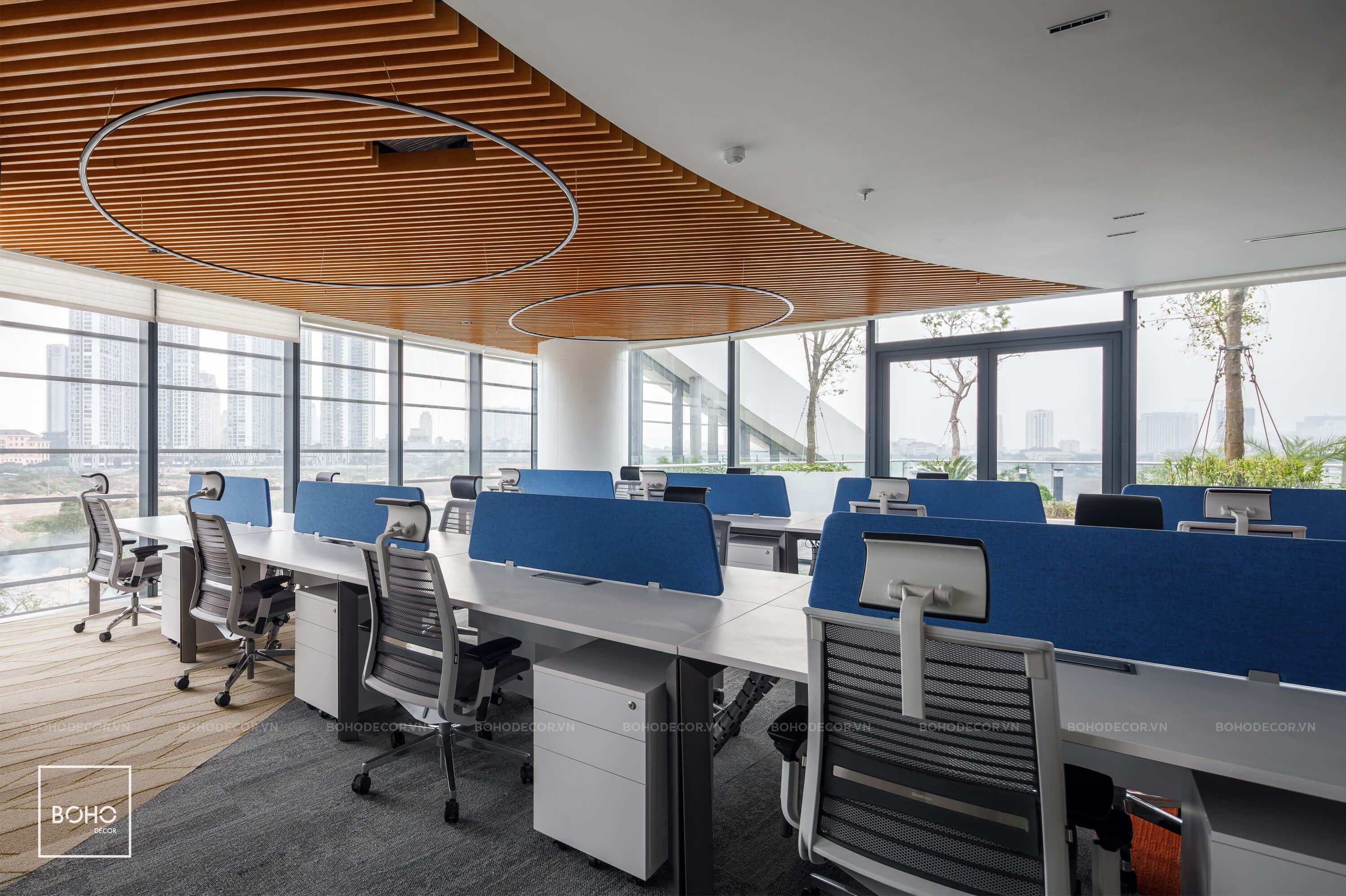 Trụ sở mới tập đoàn Viettel đang từng bước chính thức đi vào khai thác và vận hành. BOHO Décor tự hào được chủ đầu tư tin tưởng chọn là tổng thầu nội thất của dự án này. Cụ thể, chỉ trong vòng hơn 11 tháng kể từ ngày nhận bàn giao mặt bằng, chúng tôi đã hoàn thành cung cấp, lắp đặt toàn bộ thiết bị nội thất, đồ rời (bàn, ghế, rèm, thảm …) và thi công hoàn thiện các thiết bị liền tường.